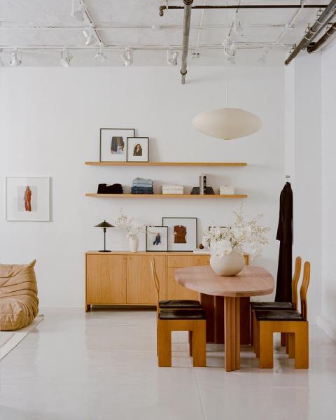 An invitation take a seat at the (literal) table. A communal "conference table" serves as an anchor to the retail experience, doubling its duty as the meeting place for checking into appointments and checking out at the point of purchase. With open seats to share, guests are welcome to sit, chat, or check an email.