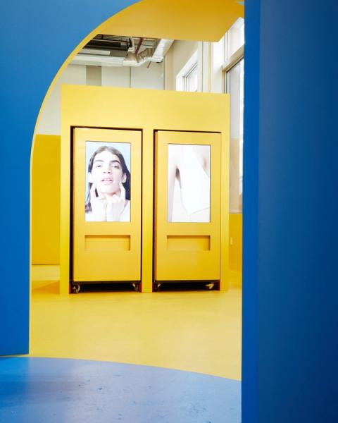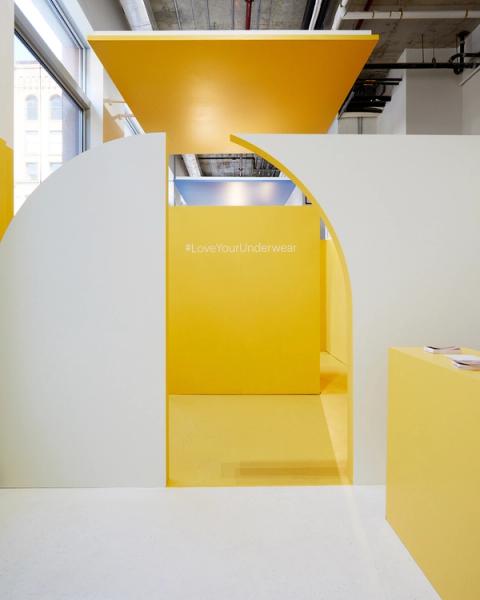Using blocks of raw cotton directly from the product factory, a materiality display showcases how the product manufacturing begins.